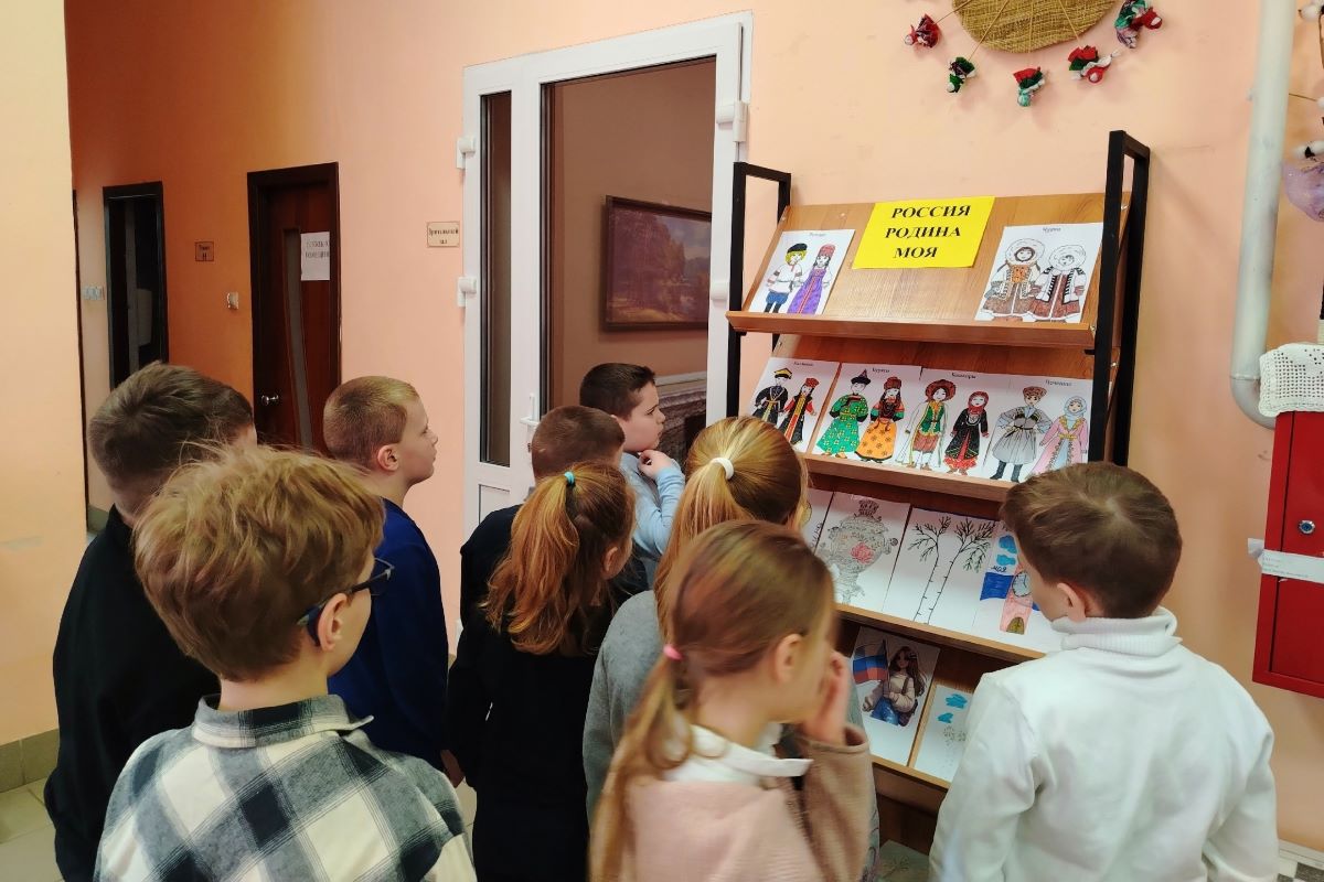Сотрудники Шелепинского сельского дома культуры оформили выставку рисунков «Россия — Родина моя!», приуроченную к Году единства народов России.