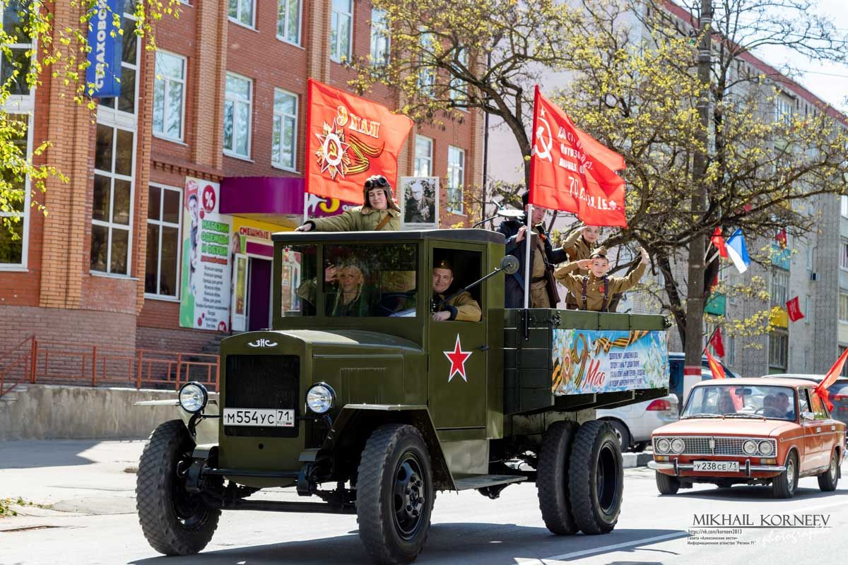 Жители Алексина встретили 80-летие со Дня Победы в Великой Отечественной войне большим автопробегом от микрорайона Петровское до Кургана славы.