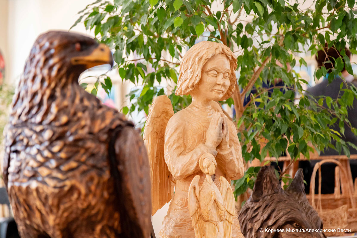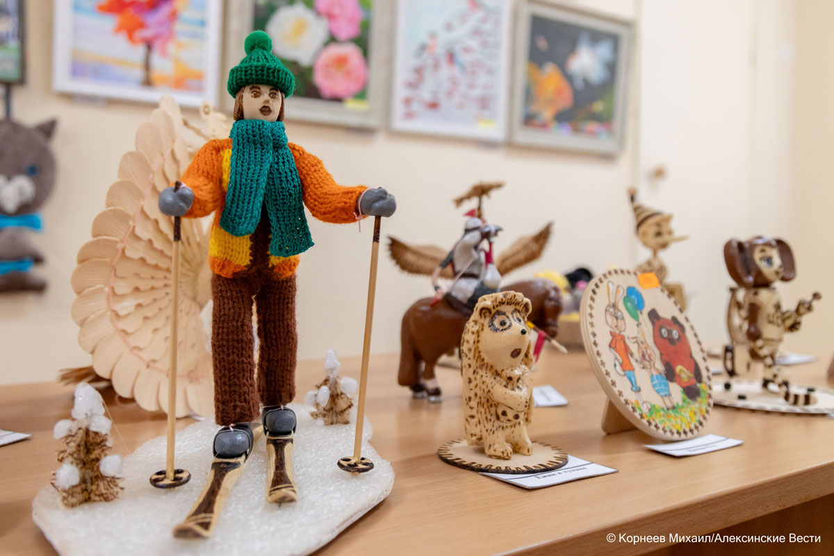 Выставку, по сути, можно смело назвать мини-фестивалем произведений искусства. Ведь на одной площадке здесь были представлены работы как местных художников, фотографов, так и мастеров по плетению из лозы, изготовлению изделий из керамики, пленочных витражей, произведений из дерева, труды мастеров лазерной гравировки. Были здесь представлены и работы алексинских рукодельниц, специализирующихся на создании тряпичных кукол, бижутерии, картины из шерсти.