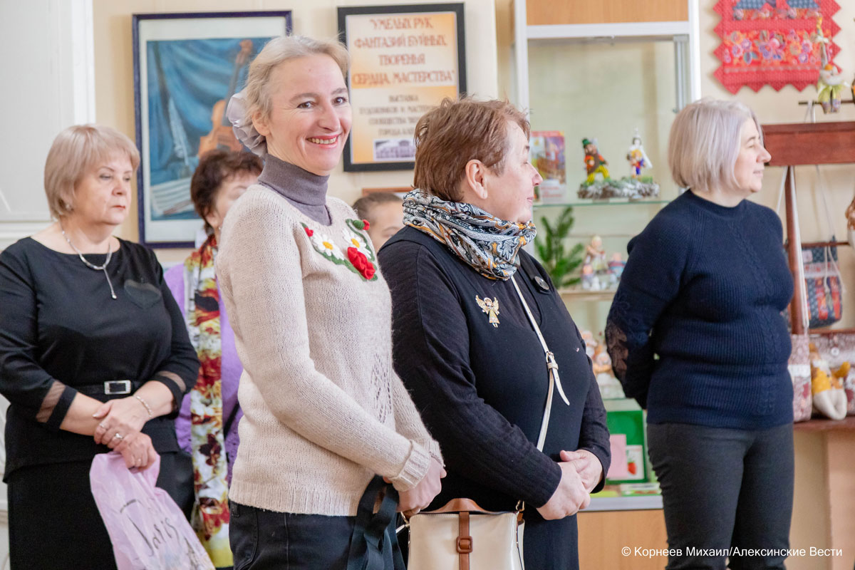 «Вы сможете насладиться великолепием красок и изяществом форм, представленных в самых разных техниках и стилях. Каждый уголок выставки — отдельная вселенная творчества, созданная руками настоящих мастеров своего дела. Не даром издревле на Руси хорошего мастера называли: «золотые руки», что говорит о высоком мастерстве. Такую же формулировку можно применить и к авторам этой выставки. Находясь в выставочном зале в очередной раз убеждаешься: насколько богат талантами алексинский край!», - произнесла она, приглашая внимание гостей к представленным экспонатам.