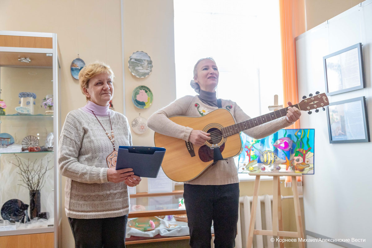 Завершилось торжественное мероприятие небольшим выступлением солисток алексинского клуба любителей авторской песни «Алебарды» Натальи Семибратской и Екатерины Бобровской.