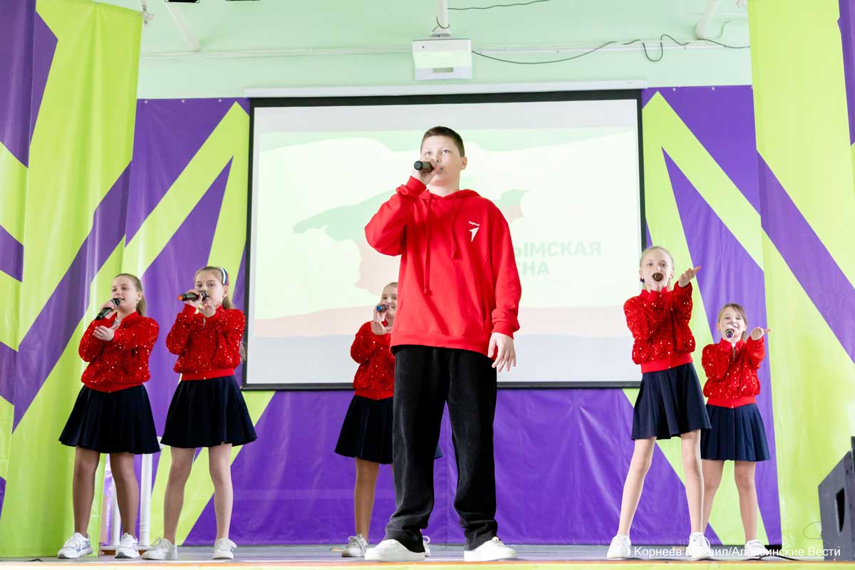 Открыли торжественную программу активисты «Движения Первых», которые исполнили зажигательный танец.