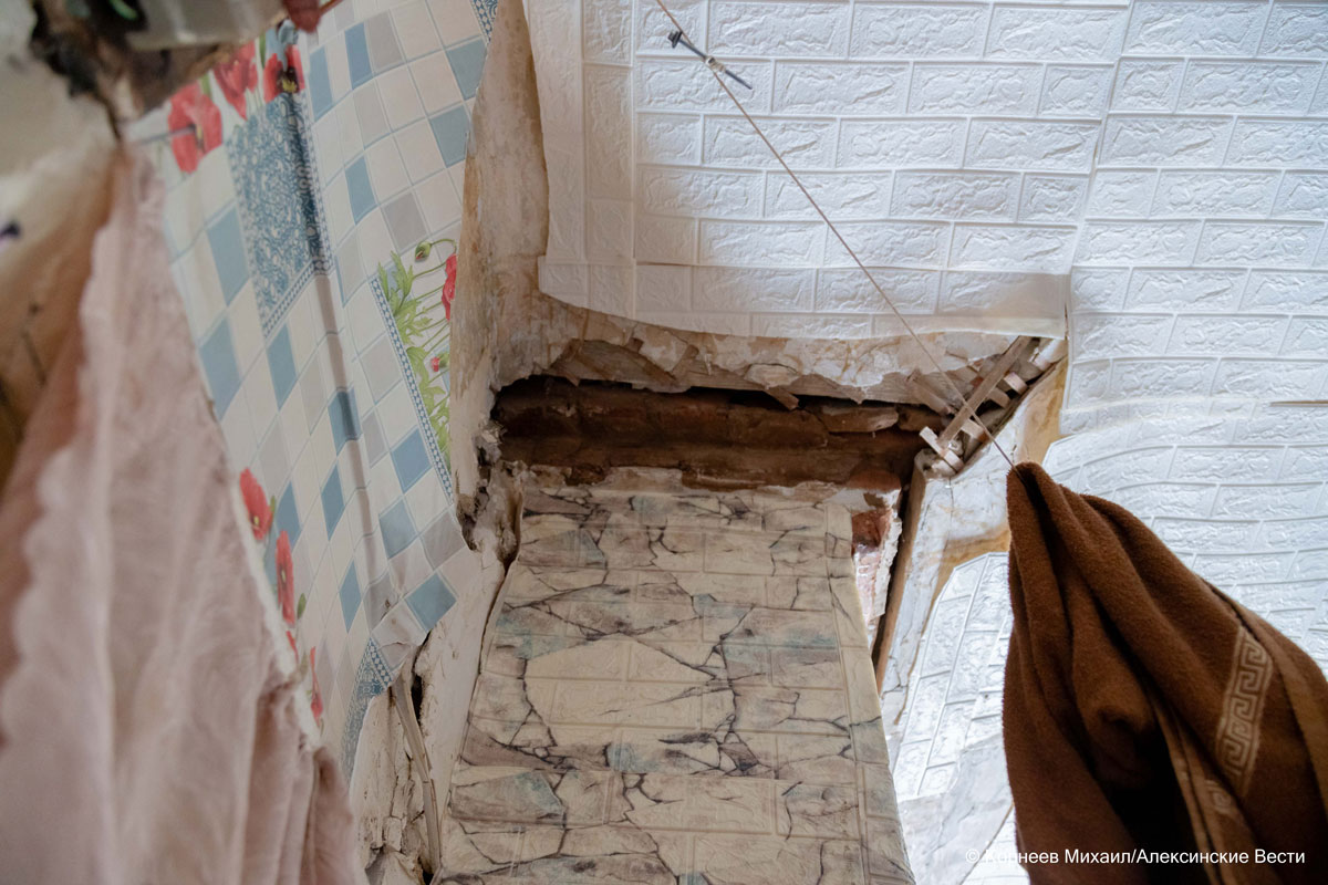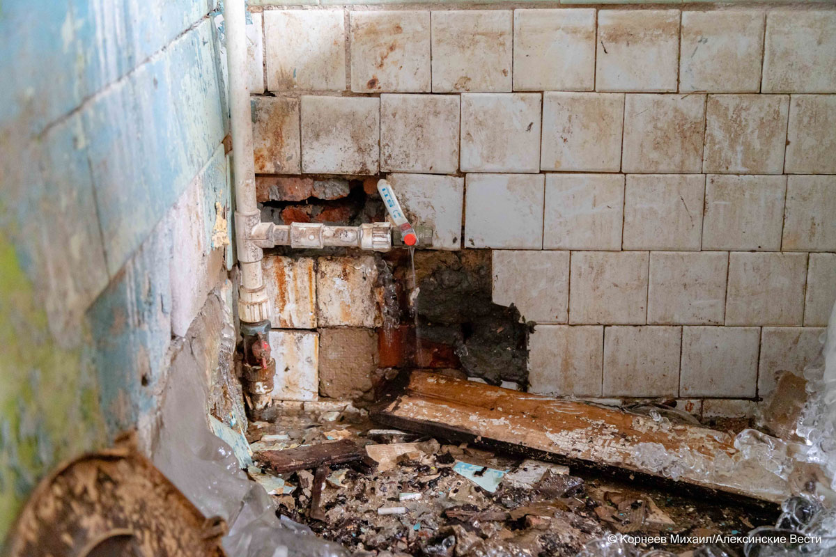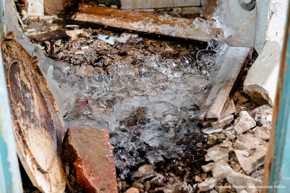 «Радиаторы отопления там срезаны. Все коммуникации отключены. А пару лет назад и печь разобрали, потолок остался на подпорках. Из-за того, что внизу все держится буквально на честном слове, в нашей квартире «поехали» стены. И часть печи у нас уже начинает разрушаться. Еду готовим на электрической плитке, так как нам тоже отключили газ. А воду в смесителе постоянно держим открытой, потому что замерзает. Спим одетые», - в слезах рассказывала подробности Галина Ивановна.