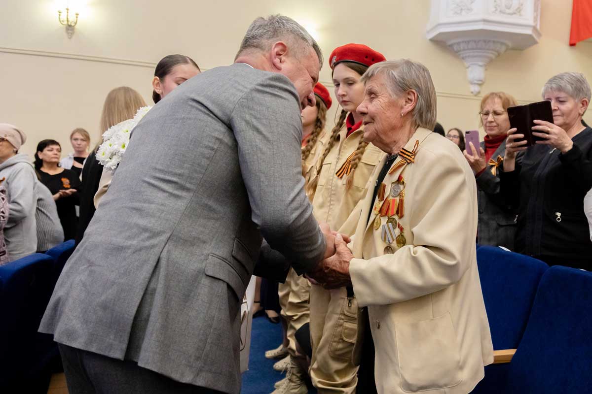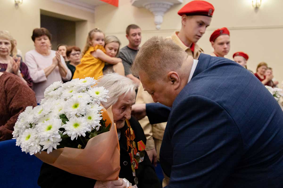 Отдельным вниманием, аплодисментами, букетами цветов и подарками от администрации города были отмечены присутствующие в зрительном зале ветераны Великой Отечественной войны, труженики тыла, бывшие жители блокадного Ленинграда и несовершеннолетние узники фашистских концлагерей.