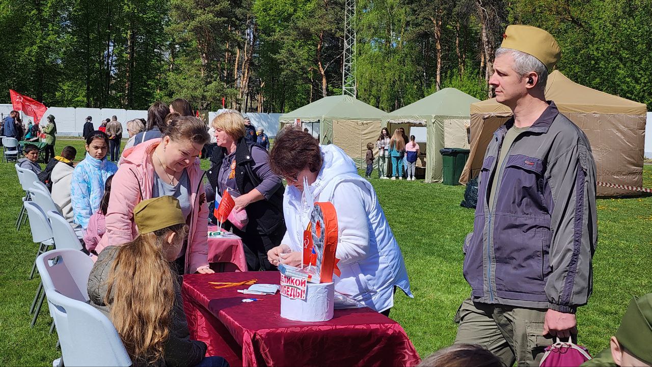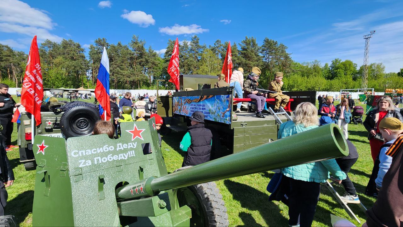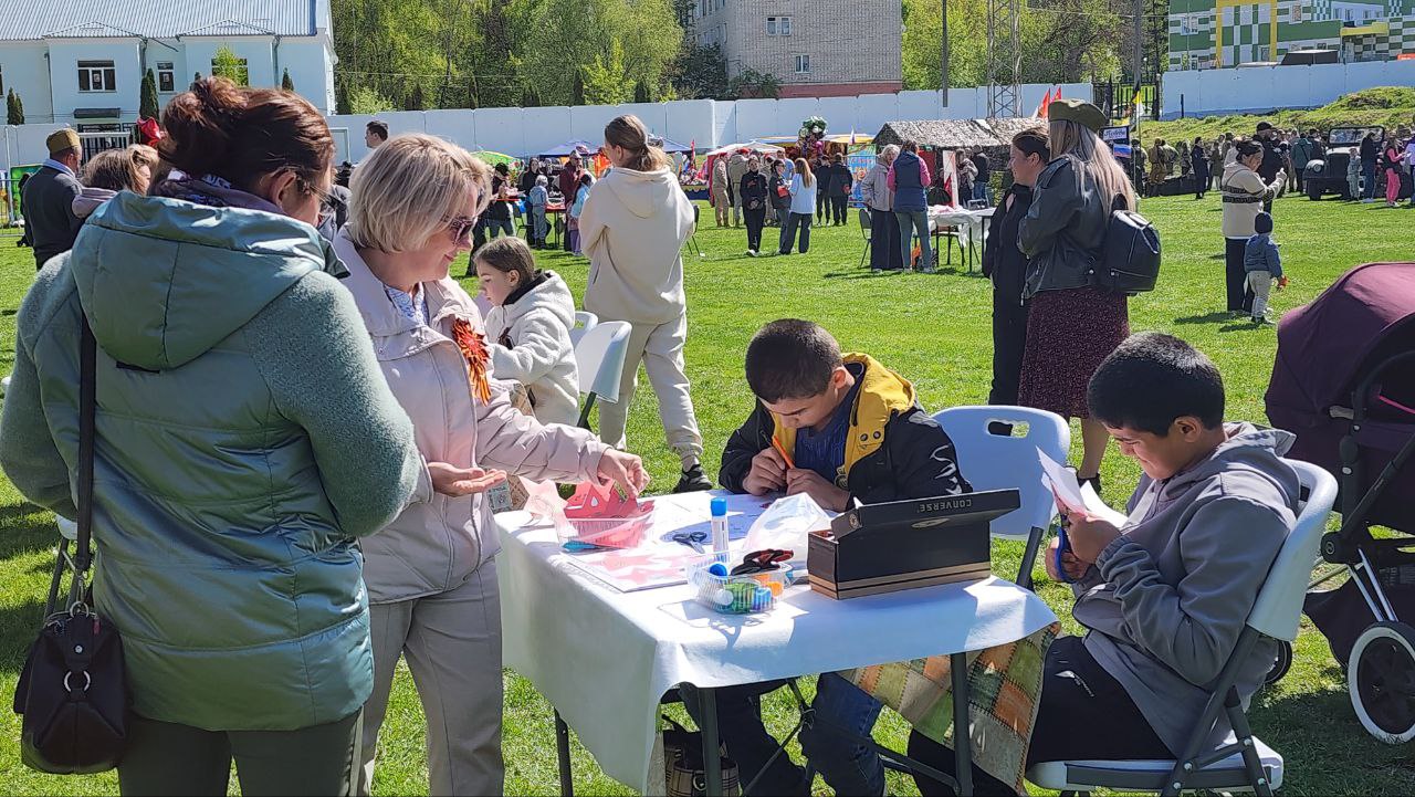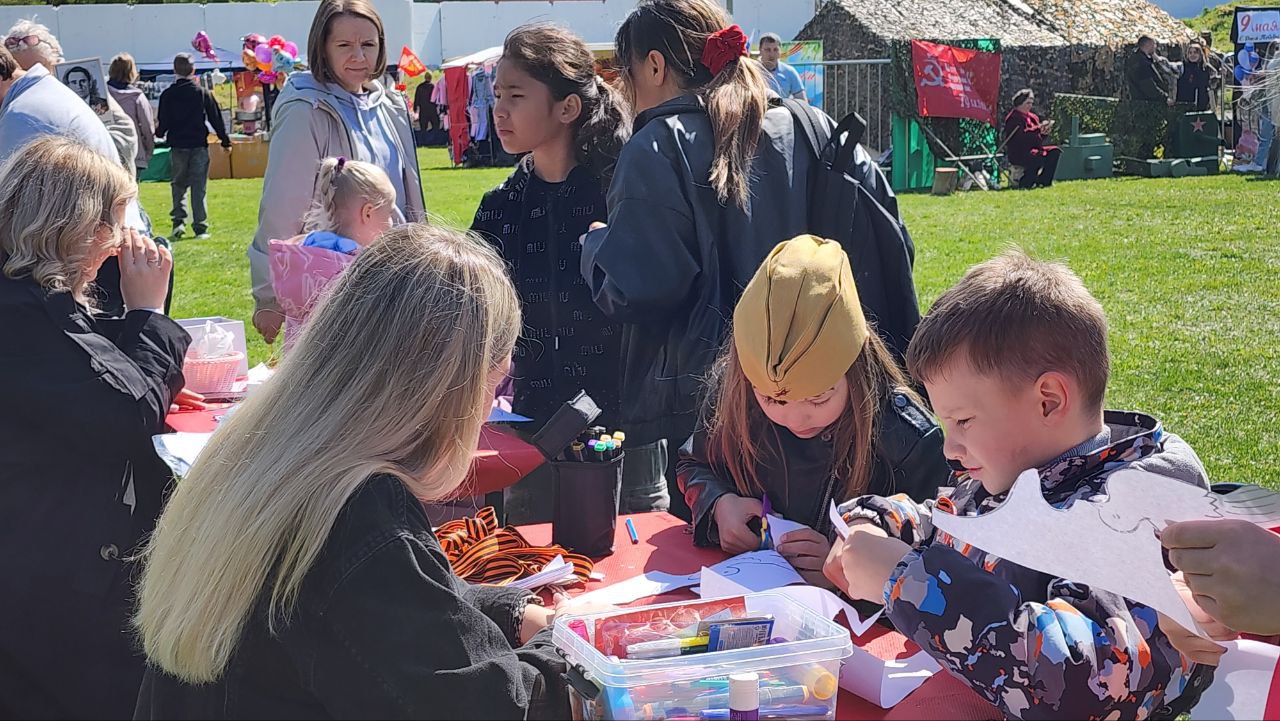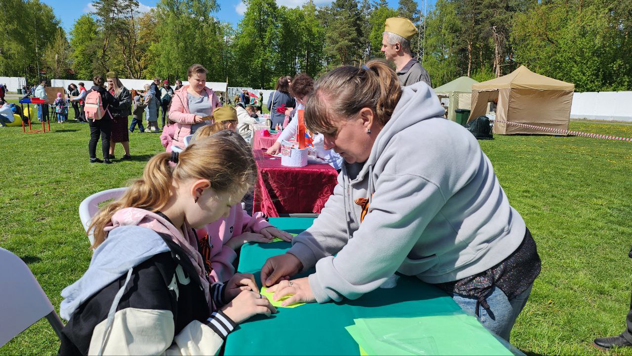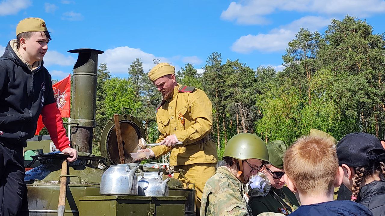 С обеда на стадионе «Химик» работают интерактивные площадки, проводятся патриотические мастер-классы. Здесь организована выставка военной техники, каждый может отведать солдатской каши, приготовленной в полевой кухне.