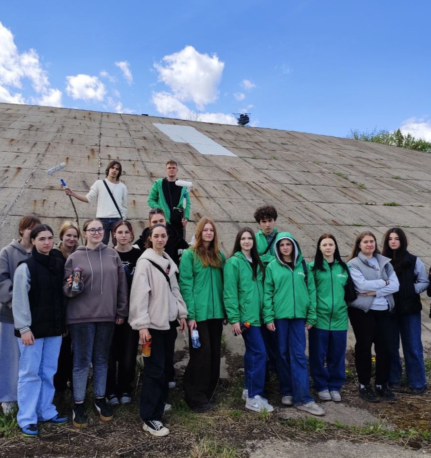 Студенты Алексинский химико-технологический техникум приняли участие в молодёжном субботнике по очистке дамбы моста, а затем совместно с другими участниками нанесли памятный мурал - произведение настенной живописи большого размера, приуроченный к 80-летию Победы в Великой Отечественной войне.