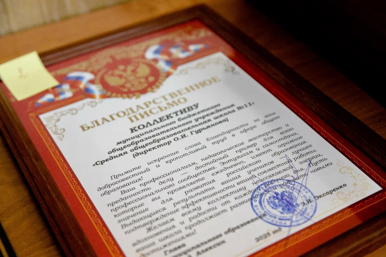 Свою историю в школе №11 хранят бережно! Здесь есть свой музей, который рассказывает обо всех этапах развития учебного заведения с момента постройки в 1940 году его четырехэтажного здания. А рассказывать действительно есть о чем! В годы войны в школе №11 размещался госпиталь. Первый ее директор Авдеев Андрей Васильевич вместе с выпускниками ушел добровольцем на фронт и погиб в ноябре 1941-го в Калужской области. А недавно на школе №11 открыли памятную доску герою уже нашего времени. Выпускник Евгений Котьянов погиб при исполнении воинского долга в зоне СВО…