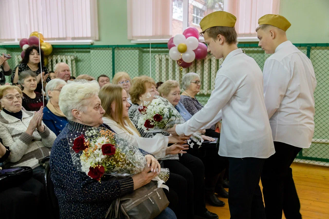 В актовом зале в первых рядах сидели учителя-ветераны, которые вместе с коллегами создавали ту самую особую атмосферу душевной теплоты, что и сегодня царит в школе №11: Тамара Петровна Волкова, Татьяна Михайловна Малякина, Лидия Сергеевна Котова, Лариса Николаевна Романова, Наталья Станиславовна Пивоварчик, Елена Викторовна Макарова, Ирина Алексеевна Банникова, Ирина Михайловна Дьякова. На празднике им уделили особое внимание. Дети вручили ветеранам цветы.