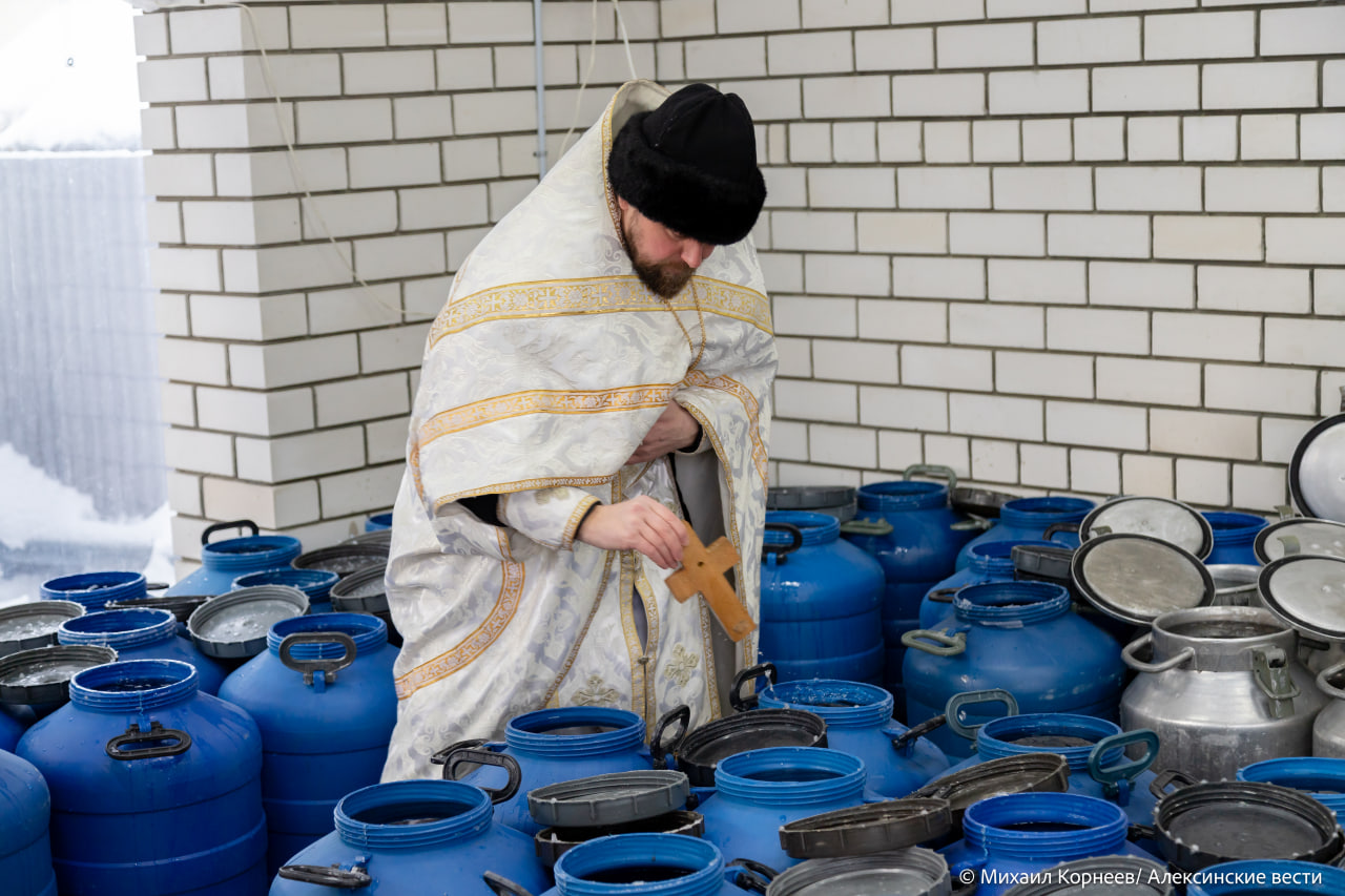 Особое отношение к воде – тоже древняя христианская традиция. Считается, что на освященную воду нисходит Дух Святой, как он нисходил на Христа. И эта вода благодаря молитве долго не портится. А еще, по мнению верующих, она обладает свойством духовного очищения и оздоровления. Поэтому православные с великой радостью набирают освященную воду домой. А самые крепкие духом еще и окунаются на Крещение в ледяную прорубь. Это народная традиция, которая не предписывается церковным уставом, но весьма распространена среди верующих, в том числе и в Алексине.